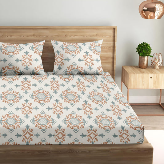 Oak & Lily King Size Bedsheet – Paradise Charm Orange & Blue | 210 TC | 100% Cotton | 2 Pillow Covers | Soft, Washable, Premium European Quality
