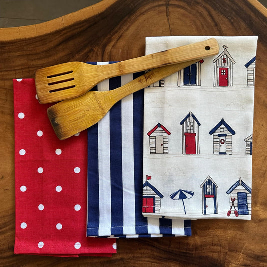 Oak & Lily Kitchen Towels – Beach House, Navy & White Stripe, Red Polka Dot | 100% Cotton | European Quality | Super Absorbent & Anti-Bacterial
