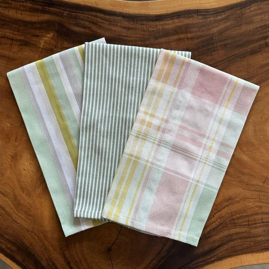 Oak & Lily Kitchen Towels – Peach, Pink Checks & Stripe Print | Set of 3 | 100% Cotton | Super Absorbent | Premium Quality