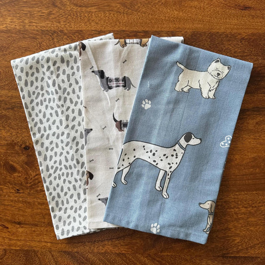 Oak & Lily Kitchen Towels – Dog Prints | Set of 3 | 100% Cotton | European Quality | Super Absorbent & Anti-Bacterial