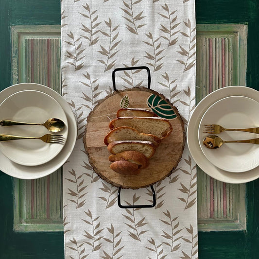 Oak & Lily Table Runner – Ivory & Beige Leaf Print | 100% Cotton | Premium European Quality