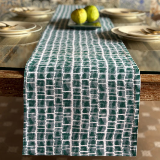 Oak & Lily Table Runner – Green & White Geometric Print | 100% Cotton | Heat Resistant | Premium European Quality