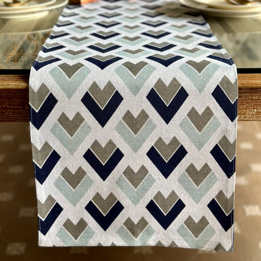 Oak & Lily Table Runner – Blue & Grey Geometric Print | 100% Cotton | Heat Resistant | Premium European Quality