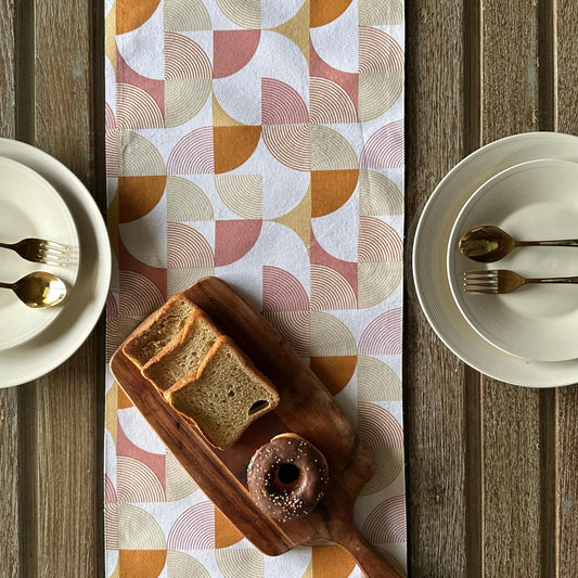Oak & Lily Table Runner – Rust & Mustard Abstract Geometric Print | 100% Cotton | Premium European Quality
