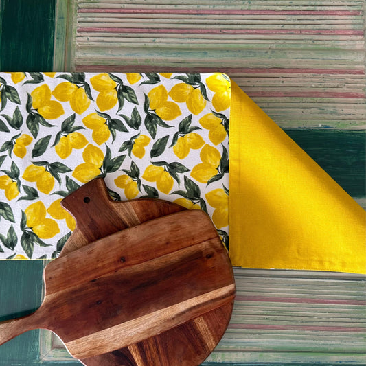 Oak & Lily Table Runner – Yellow & Green Lemon Print | 100% Cotton | Premium European Quality