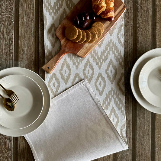 Oak & Lily Table Runner – Ivory & Beige Ikat Print | 100% Cotton | Premium European Quality