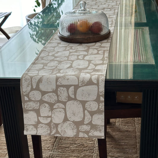 Oak & Lily Table Runner – Beige & Ivory Abstract Print | 100% Cotton | Premium European Quality