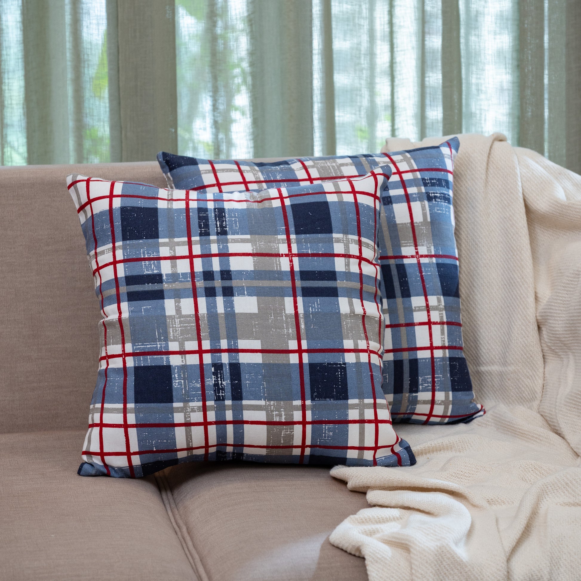 Oak & Lily Blue Check Cotton Cushion Cover | 100% Pure Cotton | Soft, Durable & Washable | European Quality