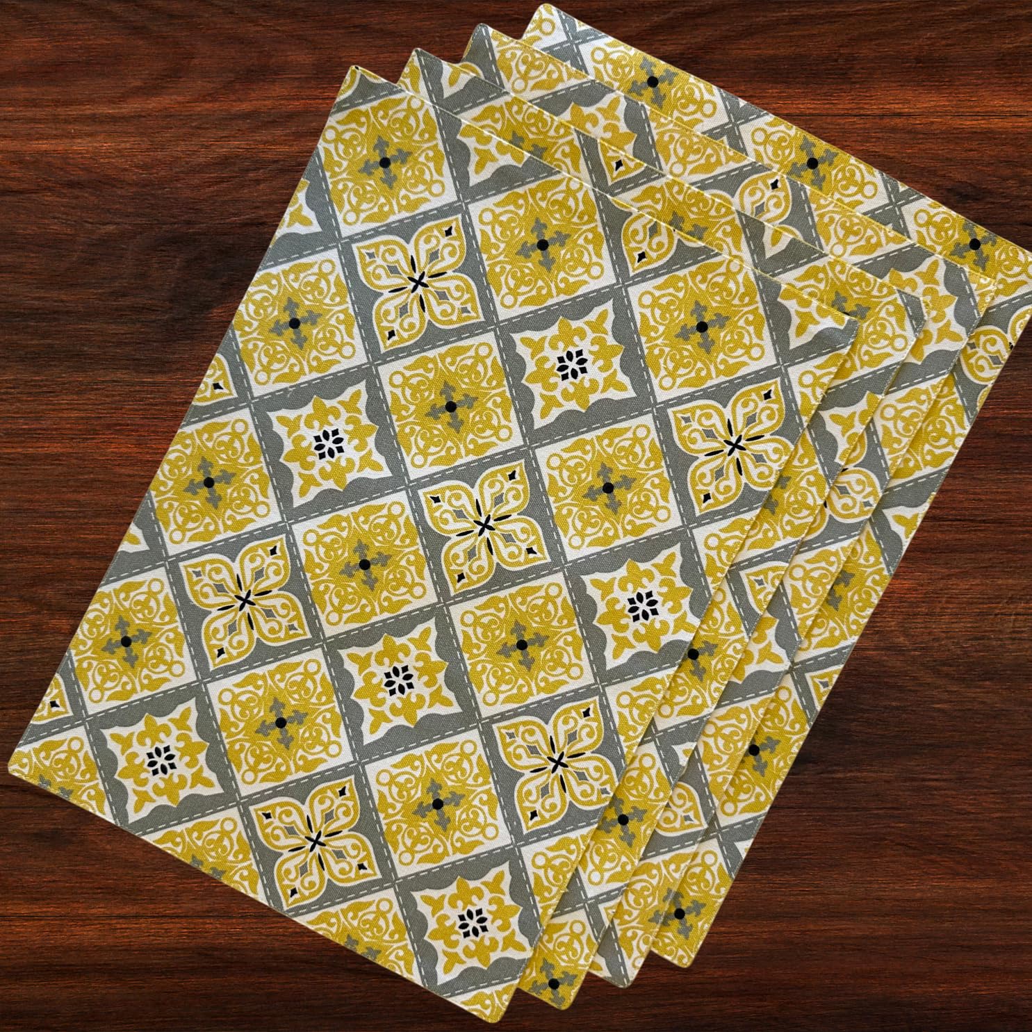Oak & Lily Placemats – Yellow Grey Ethnic Print | 100% Cotton | Heat Resistant | Premium European Quality