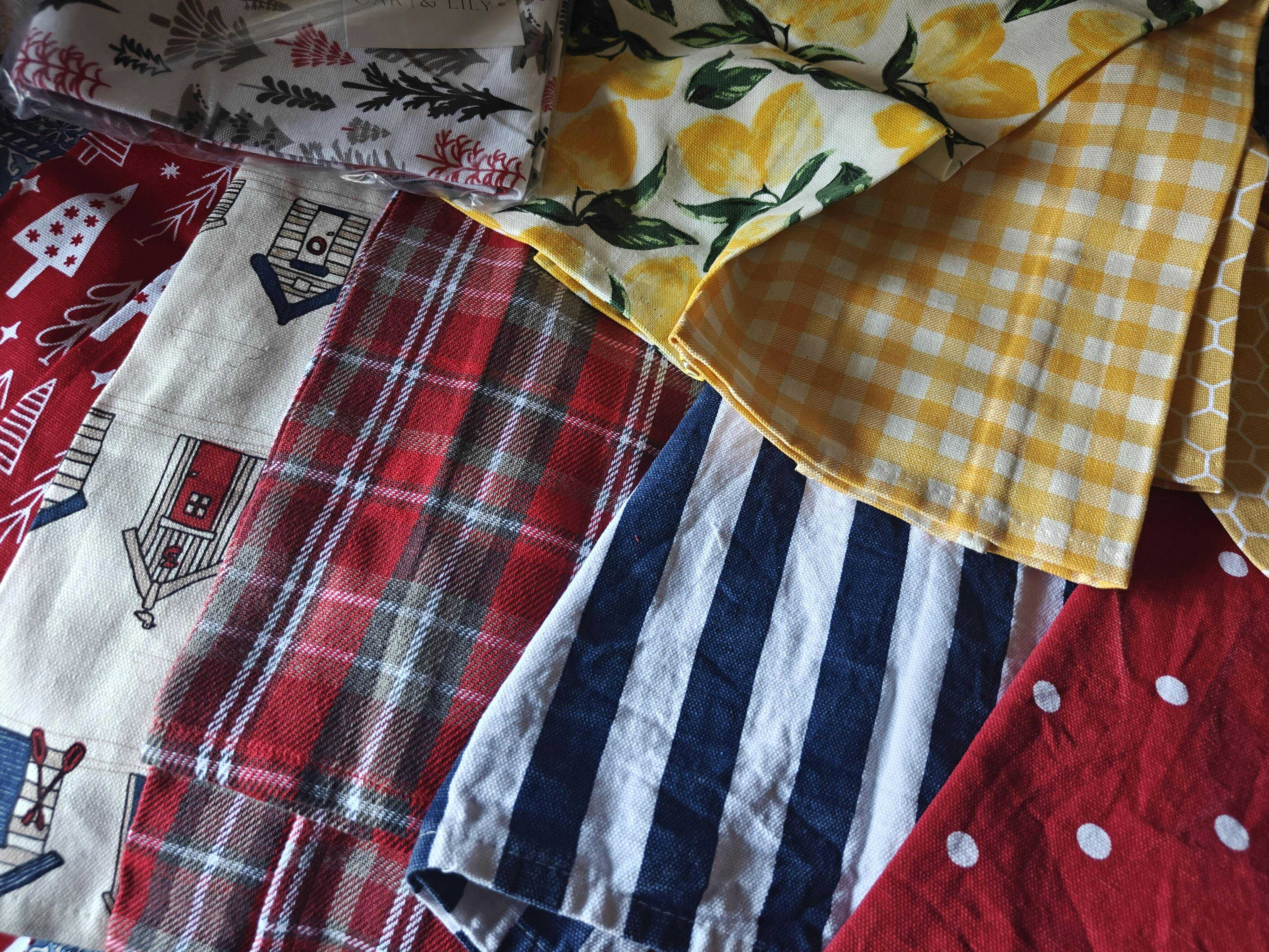 Oak & Lily Kitchen Towels – Beach House, Navy & White Stripe, Red Polka Dot | 100% Cotton | European Quality | Super Absorbent & Anti-Bacterial